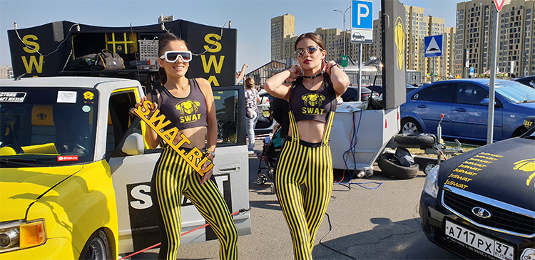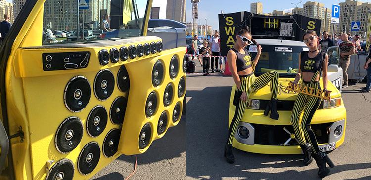 Команду SWAT TEAM представлял легендарный автомобиль Toyota Scion XB из Новосибирска. Яркий, зрелищный и мощный демокар, в котором установлено 133 динамика, прекрасно путешествует по всей России и зарубежью своим ходом, демонстрируя всем высокие эксплуатационные качества проекта, надежность и великолепный звук автомобильных компонентов.
