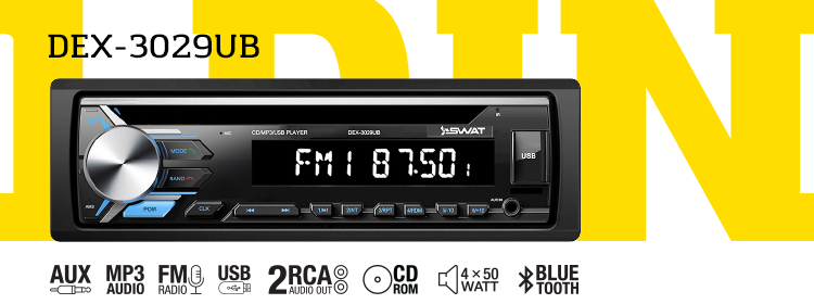 Магнитола SWAT DEX-3029UB специальная разработана для поддержки формата CD. Магнитола поддерживает подключение с помощью USB и разъема AUX. Воспроизводите музыку со своего смартфона через USB. Слушайте также FM-радио и сохраняйте до 18 любимых станций, чтобы иметь быстрый доступ к ним.